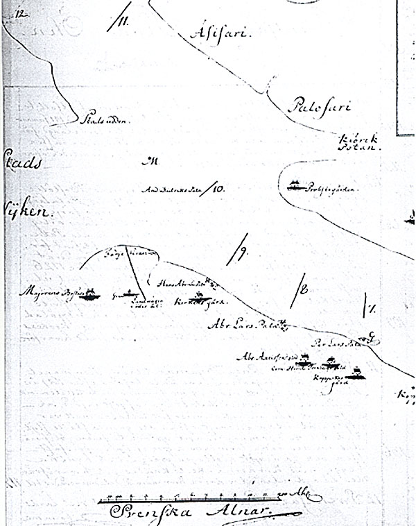 ........................Och då varje jordägare, enligt 12 Cap. 4 § Jorda Balken och Kongl. stadga om fiskerierna i riket den 14 November 1766, ägde vatten och fiske efter sin bolstad och rågång, tillika med saltsjö fisket inomskärs då de ägde strand och holmar däromkring, ävensom vid öppna havsstranden och utom skären så långt dess landgrund räckte, samt vid stranden lågo och därifrån utlöpte, måste anses hava åtföljt de överlåtna hemmanen, ibland vilkas härligheter den jämväl påtagligen varit skattens och andra tyngders bestämmande avsedd och påräknad, helst Kongl. Maj:ts den 19 December 1695 i avseende å då förehavd rotering till knäkthåll för Westerbottens regemente till Roterings Commission avlåtne nådiga skrivelse, omförmälde bland annat, hurusom varje bys förmåner till lax-, havs- och notfiske blivit i beräkning tagna, samt den för Westerbotten den 23 Augusti 1773 utfärdade skatteläggnings metod stadgade, att hemman för husbehovs fiske, och vilken avgift i jordeboksräntan ingick;