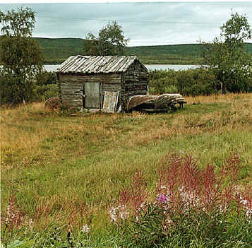 Gammal ängslada med fiskebåtar (fors dito). Bilden är tagen i slutet av augusti 2003 och i bakgrunden syns berget Kaarevaara och sjön Kaarevuopio.